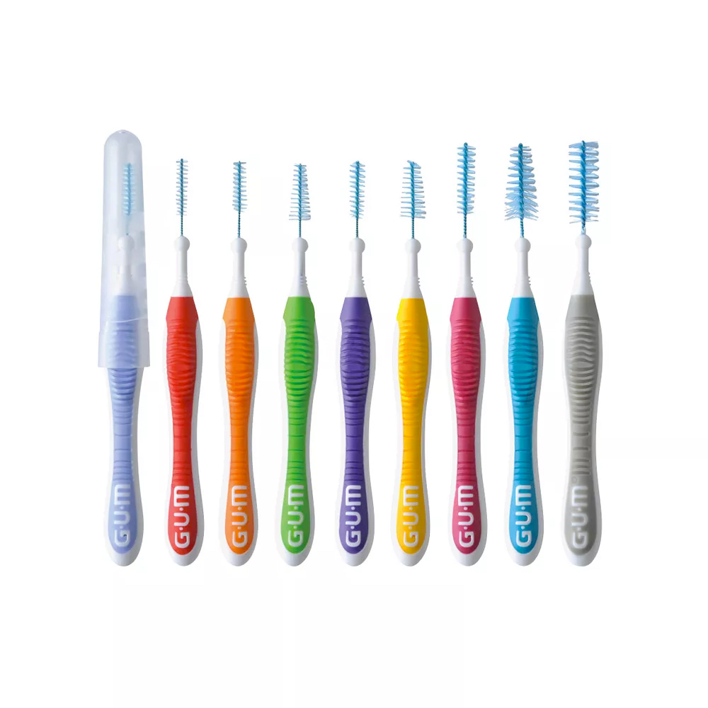 Scovolini interdentali con nuova impugnatura ergonomica e setole in nylon rivestite con clorexidina. Confezione: 36 pz.
