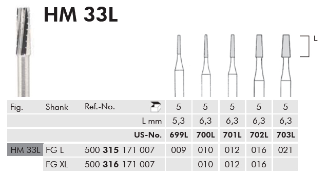 FRESE TUNGSTENO FGL–315 HM33L 012 iso171007 5pz Meisinger us701L
