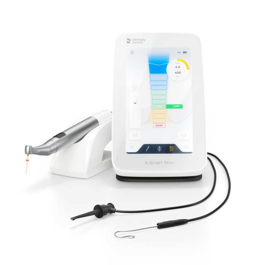 <b>Motore Endodontico con Localizzatore Apicale Integrato</b> X Smart® Pro+ Motore Endodontico con movimento reciprocante e rotante con localizzatore apicale integrato, contrangolo mini 5:1 con LED integrato, rivestimento del manipolo in acciaio regolabile a 360°, supporto magnetico per il manipolo, accessori (caricabatteria con adattatori di alimentazione universali), clip labiale, pinzetta di connessione, cavo di connessione a Y. <b>Caratteristiche tecniche:</b> - Torque: da 0.2 N•cm a 7.5 N•cm - Velocità: da 100 rpm – 3.000 rpm - Libreria con programmi preimpostati per strumenti endodontici WaveOne® Gold, ProTaper Ultimate™, TruNatomy®, la famiglia RECIPROC® e VDW.ROTATE® - Sequenze di files personalizzabili, compatibili con altri strumenti - Rotazione auto-reverse al limite di torque preimpostato e alla lunghezza di lavoro desiderata - Funzione di calibrazione (CAL) per un preciso settaggio del torque - Schermo touchscreen da 7 pollici - Batteria agli ioni di litio - Ricarica completa in 1.5h (Il motore può essere alimentato dalla batteria oppure ricaricato durante il trattamento) - Caricatore universale (voltaggio 110–240, 50/60 Hz) - Aggiornabile via Wi-Fi